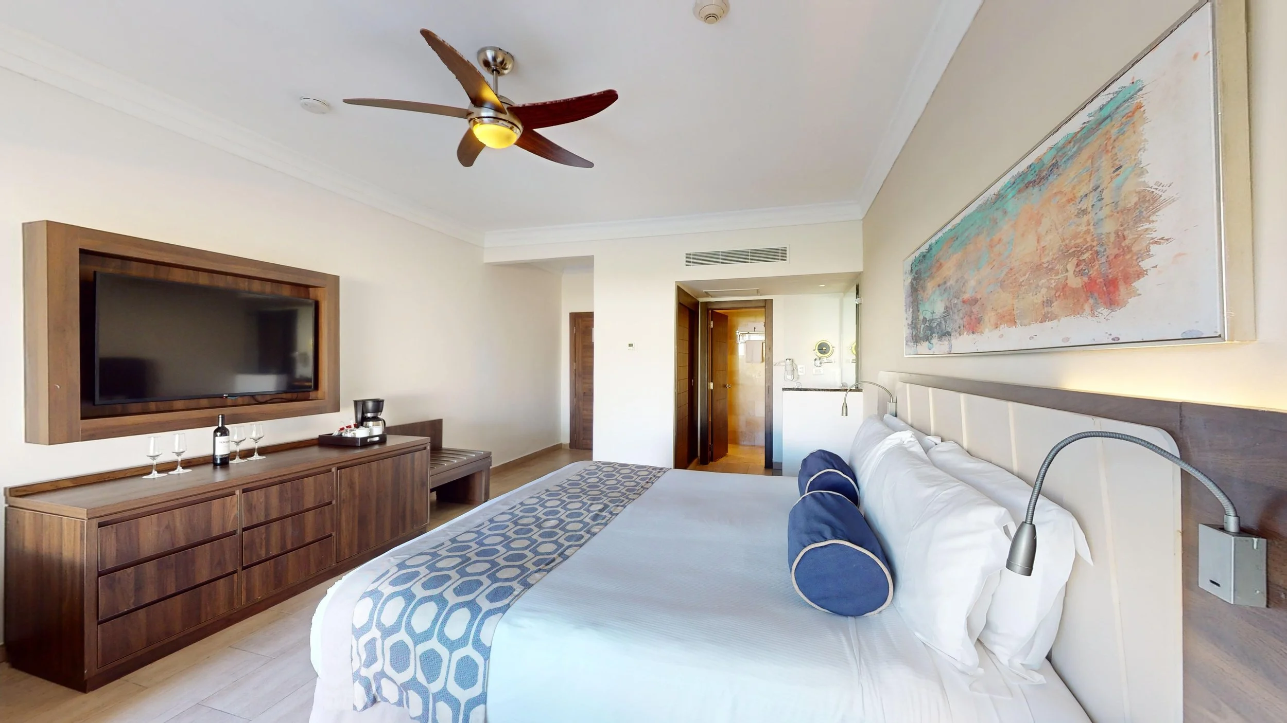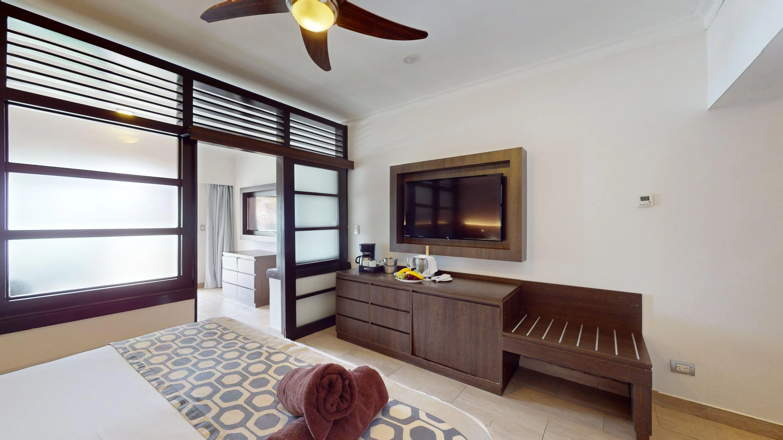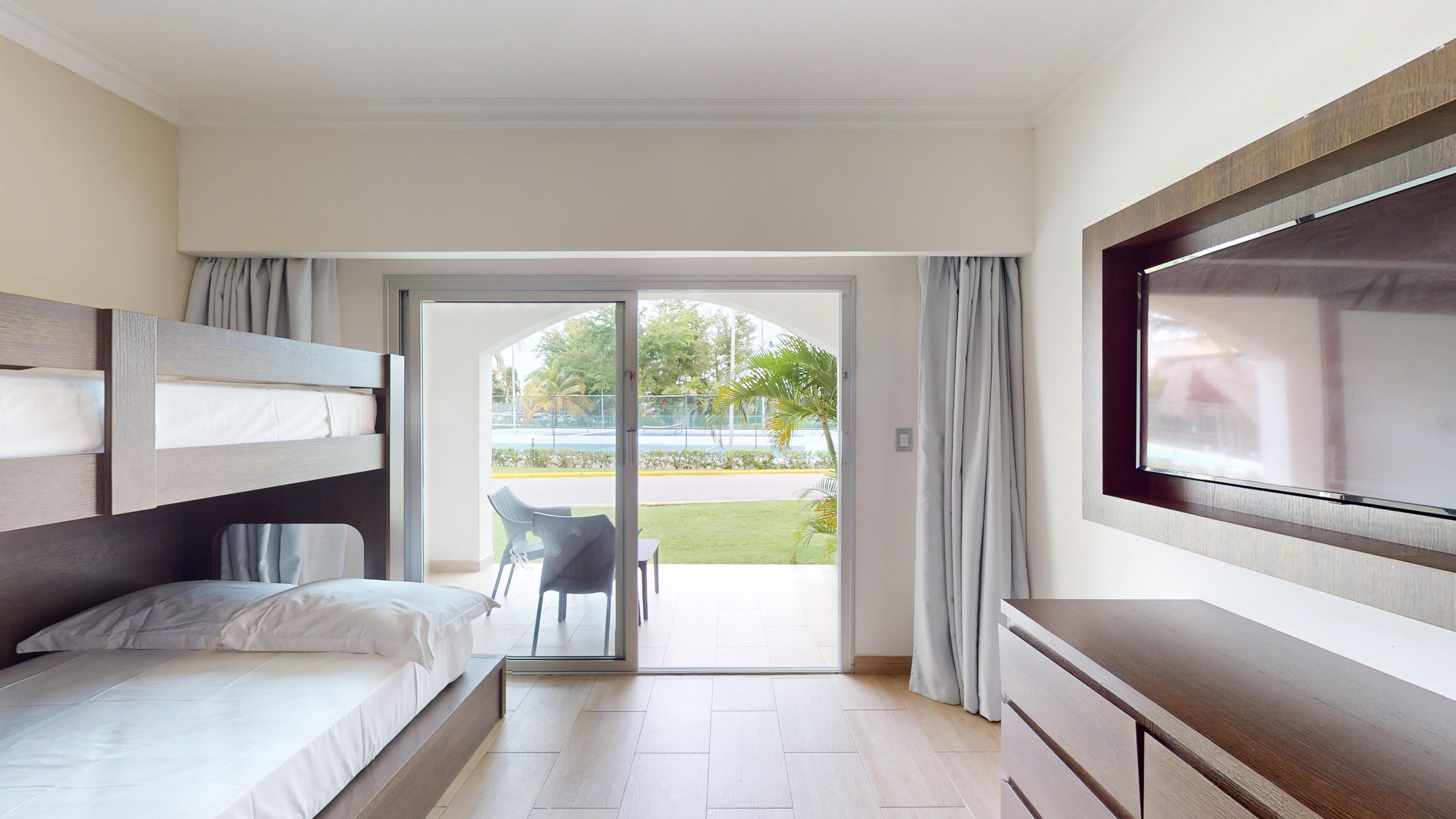 This suite is ideal for families with a set of bunk bed as well as one king bed found in the main room. The suite includes a balcony or terrace with views of the vibrant pool area, or lush gardens.